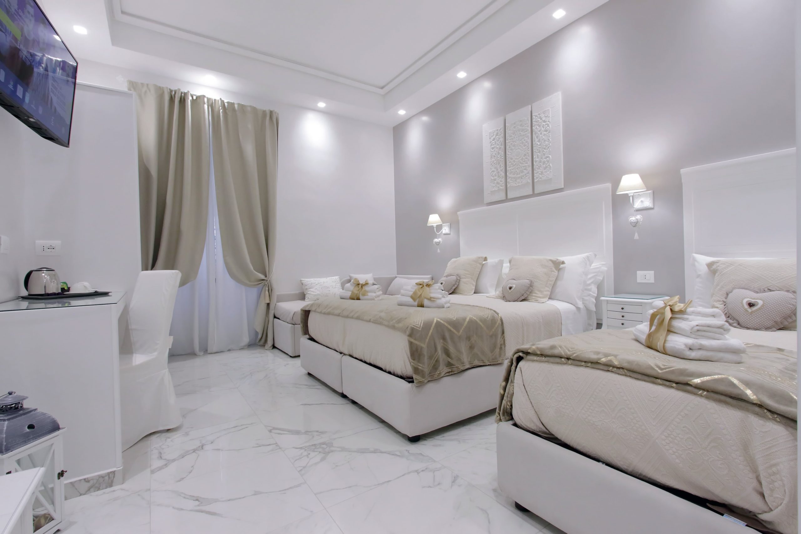 La Camera Quadrupla Superior è pensata per chi viaggia in compagnia, offrendo ampi spazi e comfort in un’atmosfera di eleganza.